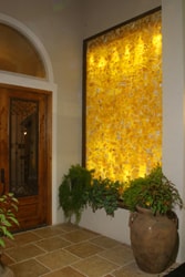 Honeycomb calcite is transparent and translucent and is sturdy enough to be used in residential and commercial applications. We can do counter tops, back splashes, bars, privacy windows, shower walls, water walls, inlays, specialty lighting, and much more! The stone makes a real statement when back lit! The possibilities are endless…..